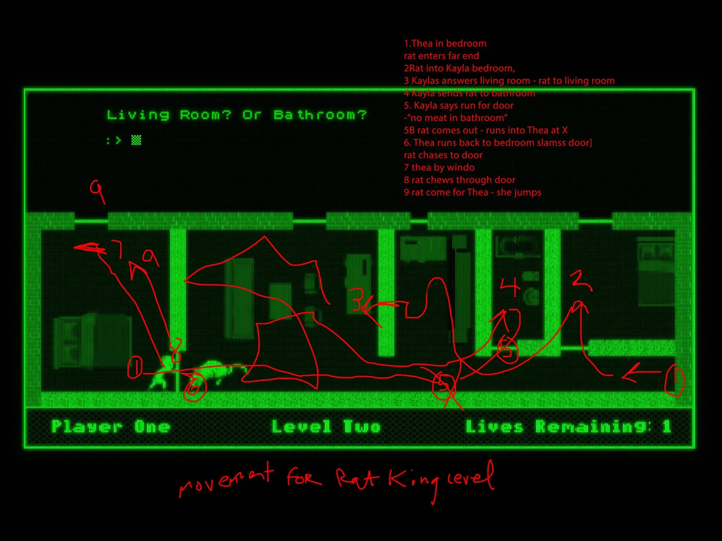 The game level that Kayla must play to protect her mother from the “rat king” that is actually stalking her in her physical apartment.