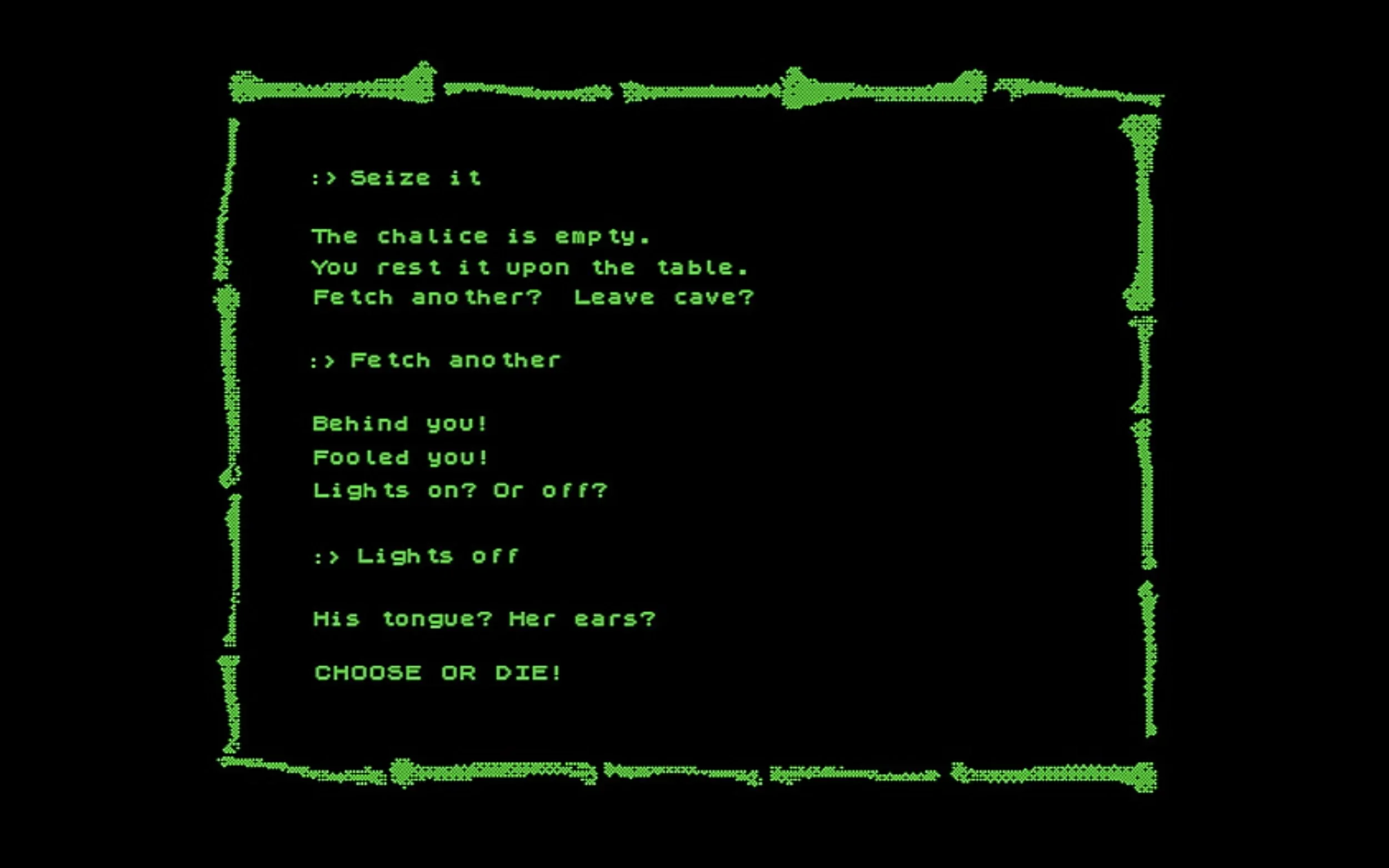 Working on Choose or Die was an absolute thrill for us. Having literally grown up with games similar to Curs>r (albeit not featuring curses) on Apple II Plus computers, the aesthetic was close to our heart. And being fans of horror, this was truly a dream project. For more info, please visit the full Choose or Die project page here.